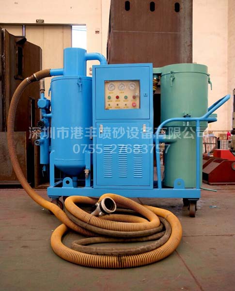 GFH-600型喷砂机是一机多用的喷砂设备,它同时具备开放式喷砂机、自动循环回收式喷砂机、吸砂机、除尘器的几种功能。它可以单独启用其中任一功能。当开放式喷砂机作业时,如果同时启动回收系统,即成环保循环回收式喷砂机,可以无尘喷砂作业,避免因粉尘污染对工作现场和人员健康造成危害,大大降低了劳动强度,提高了工作效率 。广泛适用于集装箱制造修理、造船和修船,工厂维护以及需要野外施工、搬运、进入大型工件、油罐、车体内部喷砂除锈作业。 该机适用于乐意使用循环次数较少磨料(铜矿砂)的用户。